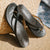 Premium Materials: Crafted with high-quality full-grain or metallic leather. providing a luxurious look and feel. The straps include decorative stitching. a comfortable leather toe post. and a cast metal hook logo.