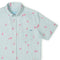Soar with tropical flair through the warm summer air in this easy breezy lightweight seersucker shirt featuring a flamboyance of flamingos (yes. that's what a group of these fancy creatures is actually called) doing their thing amongst seafoam stripes. Much classier than the plastic ones your neighbor sticks in his lawn every year. Strong breeze can't come quick enough.
