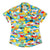 This colorful KUNUFLEX™ button down features a lucid landscape that feels like a daydream captured on canvas – sun. surf. rainbows. and major retro Disney vibes all dripping with vibrant chromatic flair.